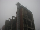 Isänpäivän aamuna sankassa sumussa kävin vilkaisemassa paikkaa. Olin varautunut hengityssuojaimella ja romulusvaatteilla, jotka saattoi hävittää reissun jälkeen purkupaikan mahdollisen pölyisyyden takia. Tarkoituksena ei ollut kuin lähinnä vilkaista paikkaa ulkopuolelta asbestin pelon takia. Asbestipurkutöitä oli tehty ennen varsinaisen purkamisen aloittamista.